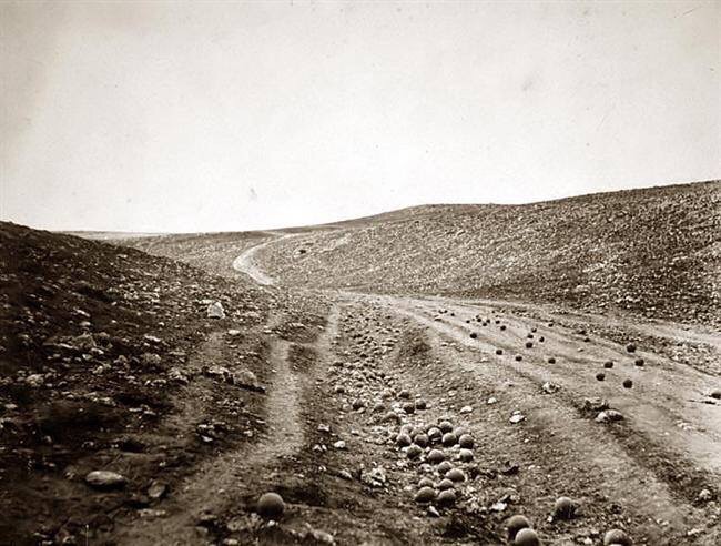 Fenton observed, “in coming to a ravine called the valley of death, the sight passed all imagination: round shot and shell lay like a stream at the bottom of the hollow all the way down, you could not walk without treading upon them.”