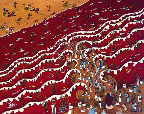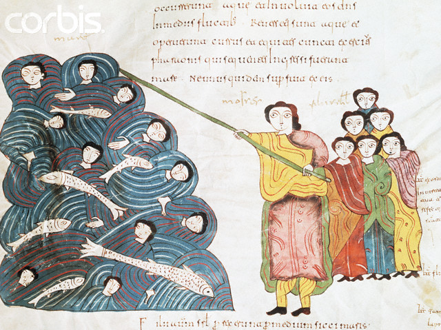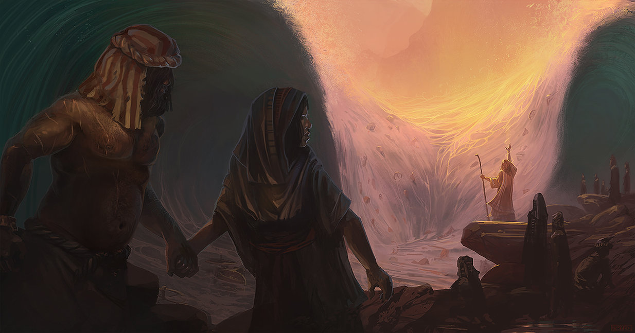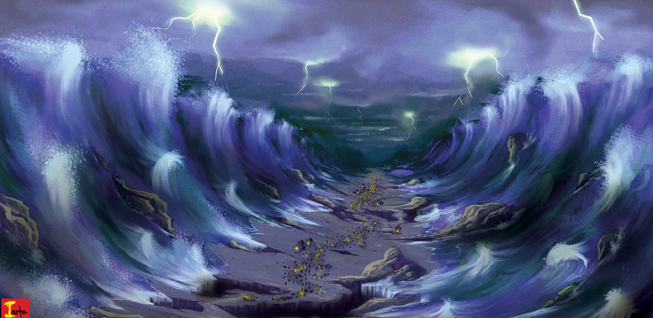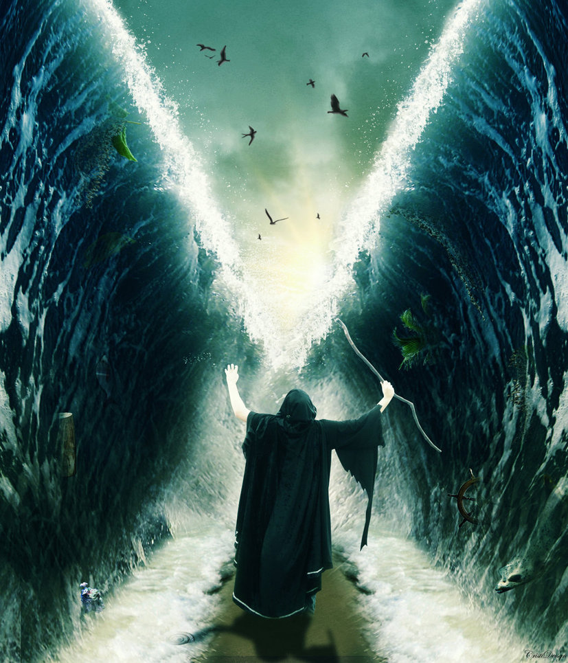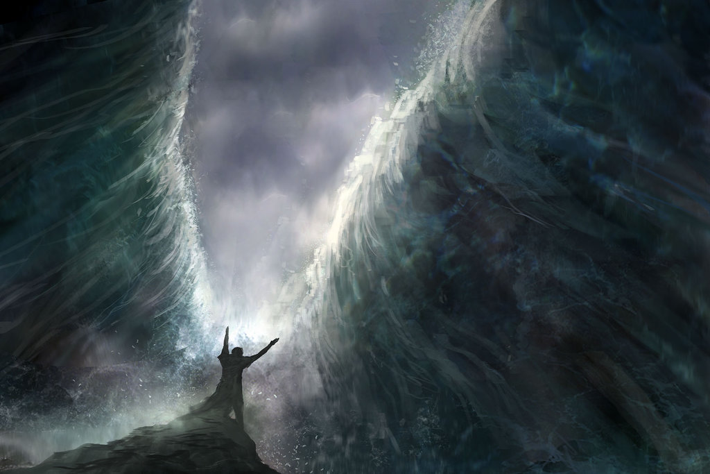 Then Moses stretched out his hand over the sea, and all that night the Lord drove the sea back with a strong east wind and turned it into dry land. The waters were divided, and the Israelites went through the sea on dry ground, with a wall of water on their right and on their left.